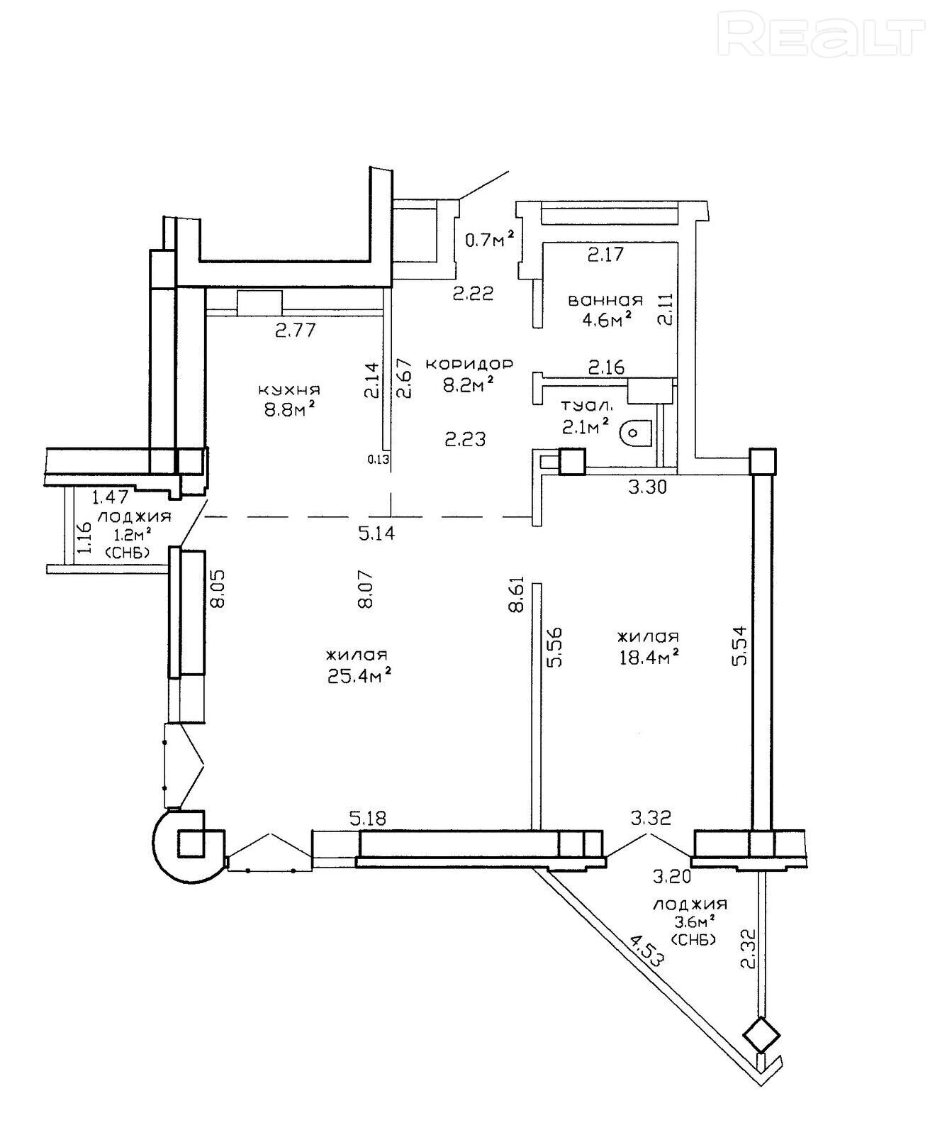 Общая площадь по СНБ 73м2.