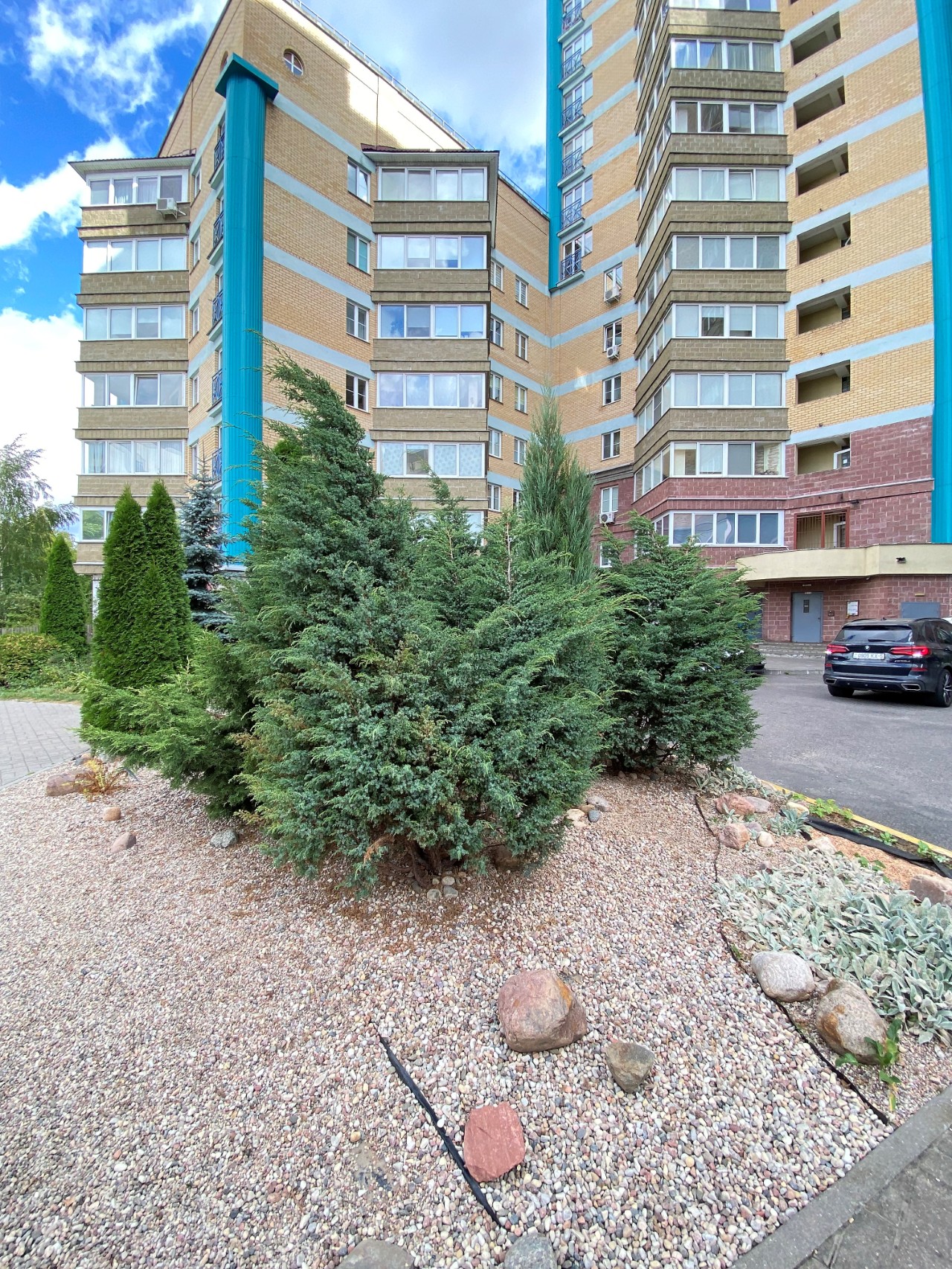 К дому относятся две парковки со шлагбаумом. Большой зеленый закрытый двор с детскими площадками.