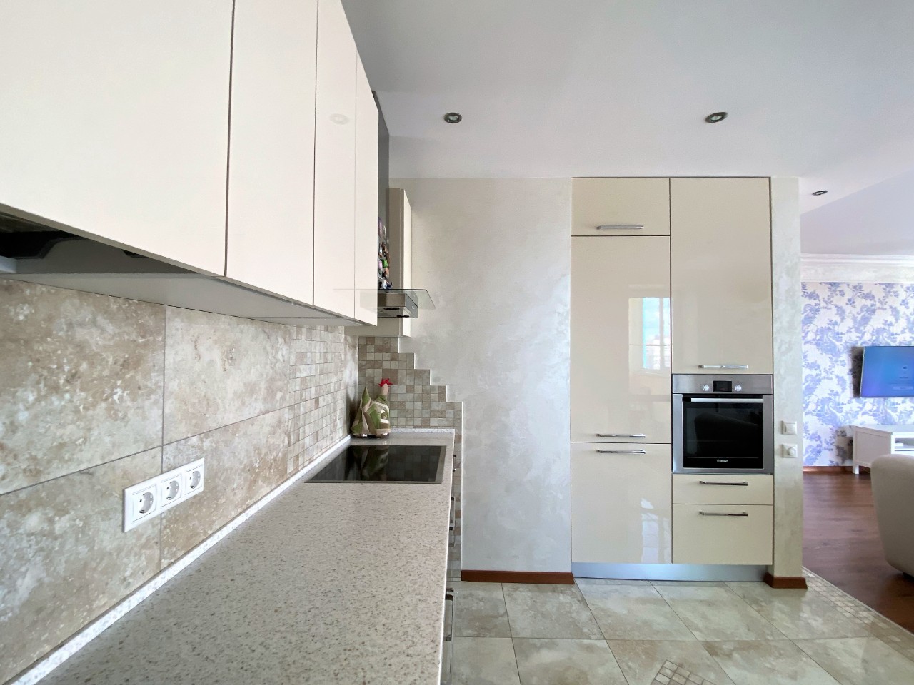 Бытовая техника: холодильник, посудомоечная машина, духовой шкаф, варочная панель, стиральная машина, бойлер, два телевизора, кондиционер.
